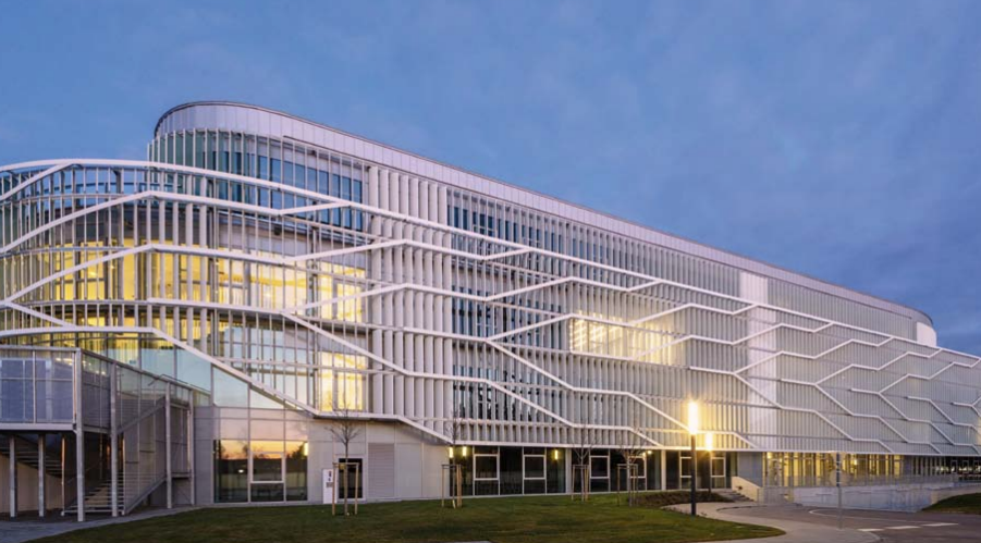 A tervezők két különleges, Európában is egyedülálló elemet álmodtak meg – az előadótermet és az aulatérbe függesztett 88 tonnás acél Tőzsdetojást -, amelyek jelentős hozzáadott műszaki és esztétikai értékkel gyarapítják a campus épületét.