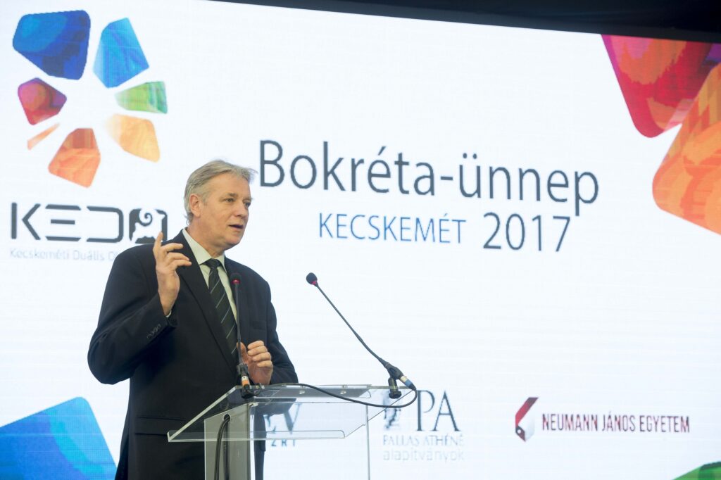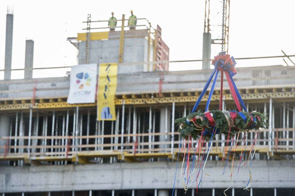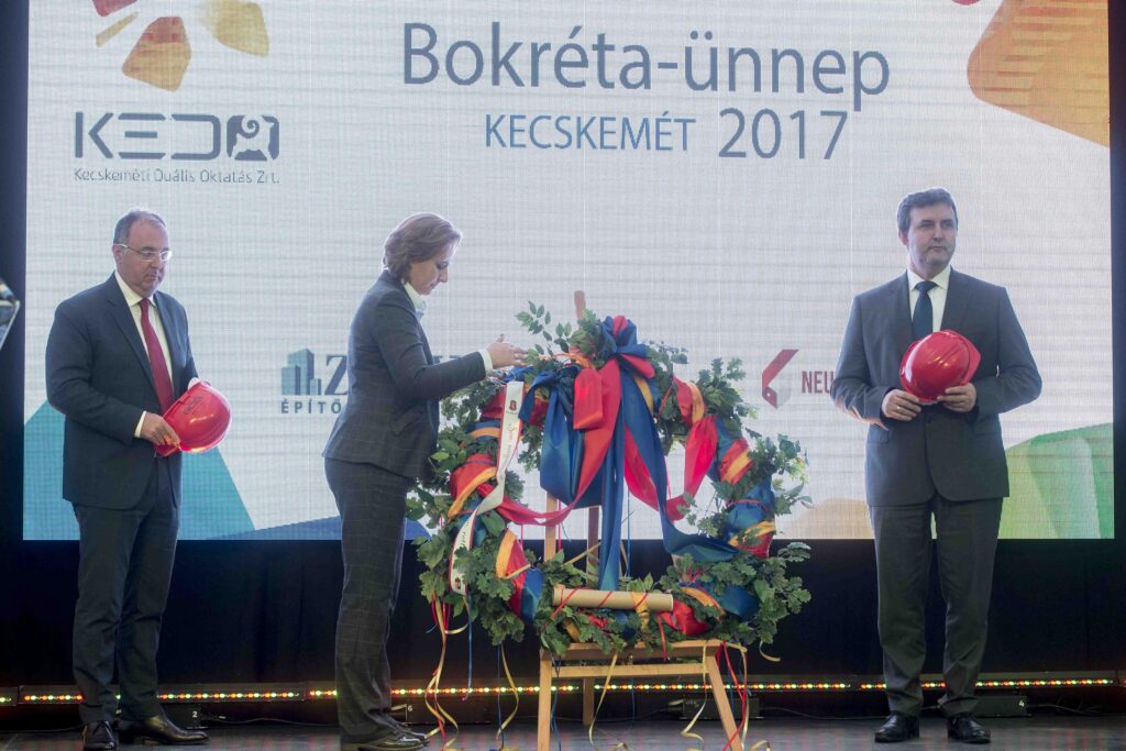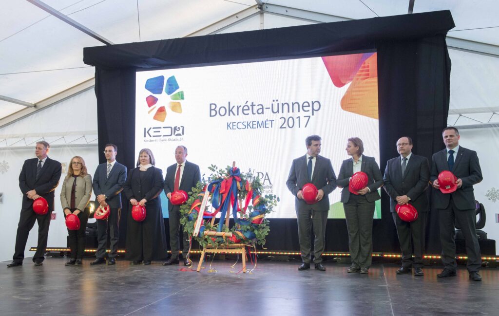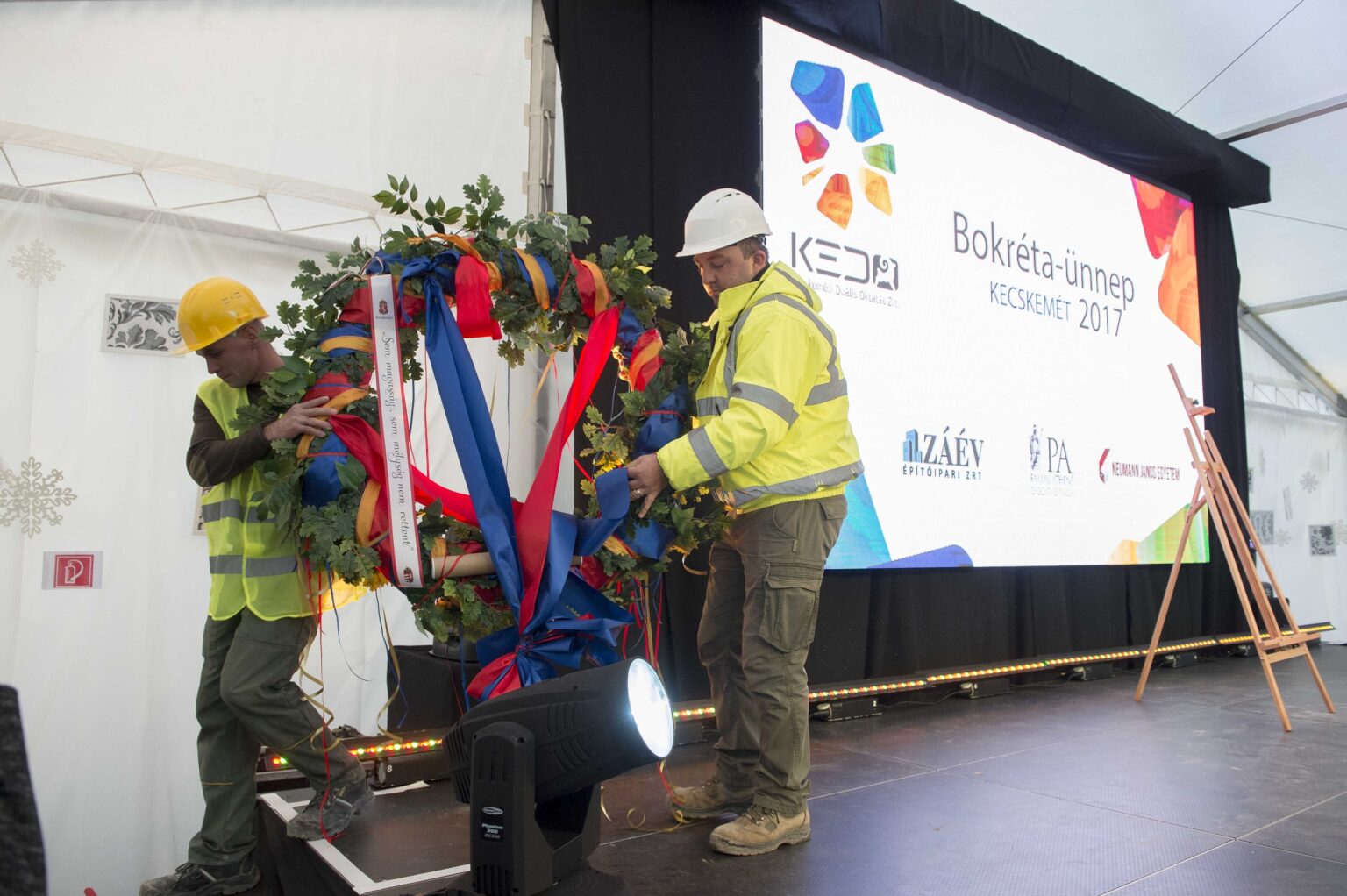 Felavatták a Kecskeméti Duális Oktatás Zrt. Oktatási épületének legmagasabb pontját, amely jövő szeptembertől a Neumann János Egyetem Gazdaságtudományi karának ad majd otthont.